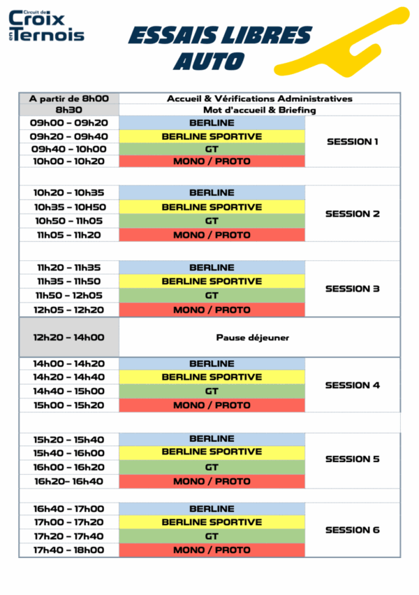 Calendrier essais libres auto 2025